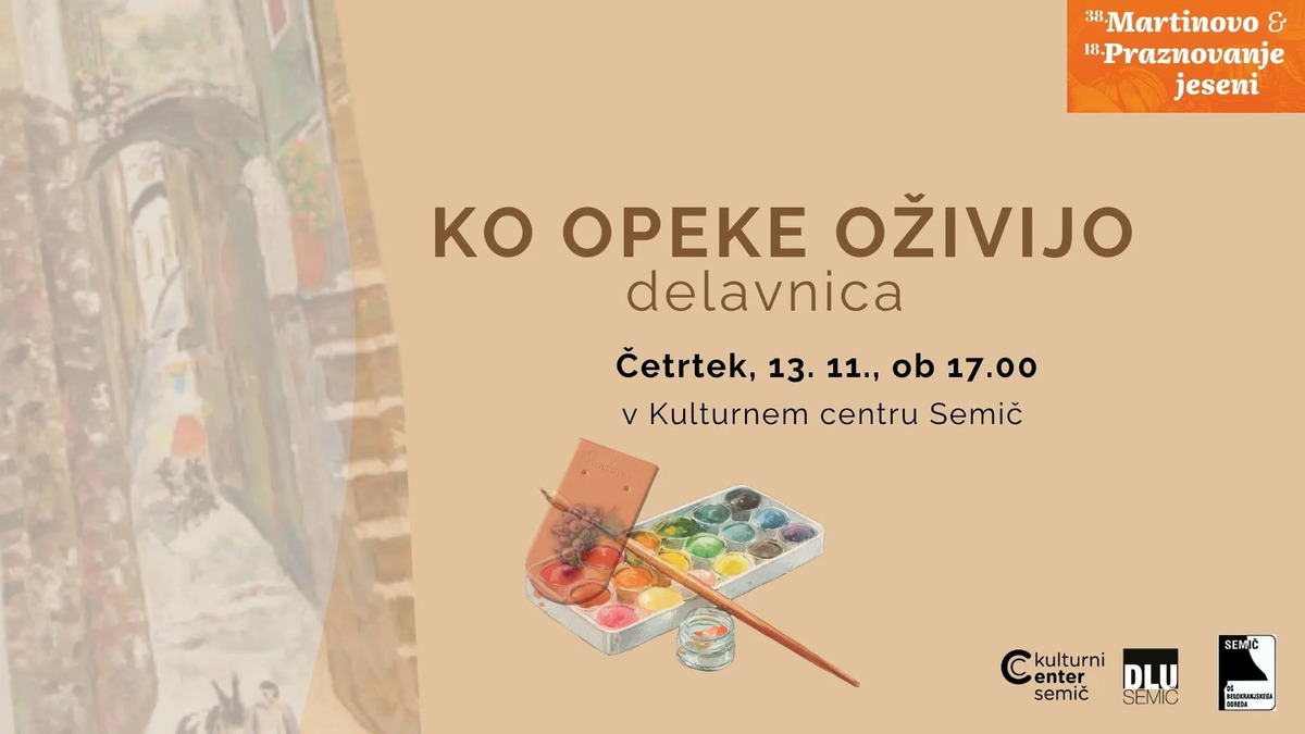 DLU Semič, OŠ Belokranjskega odreda Semič in Kulturni center Semič vabijo na likovno delavnico “KO OPEKE OŽIVIJO” v četrtek, 13. novembra 2025, ob 17. uri v Kulturnem centru Semič.