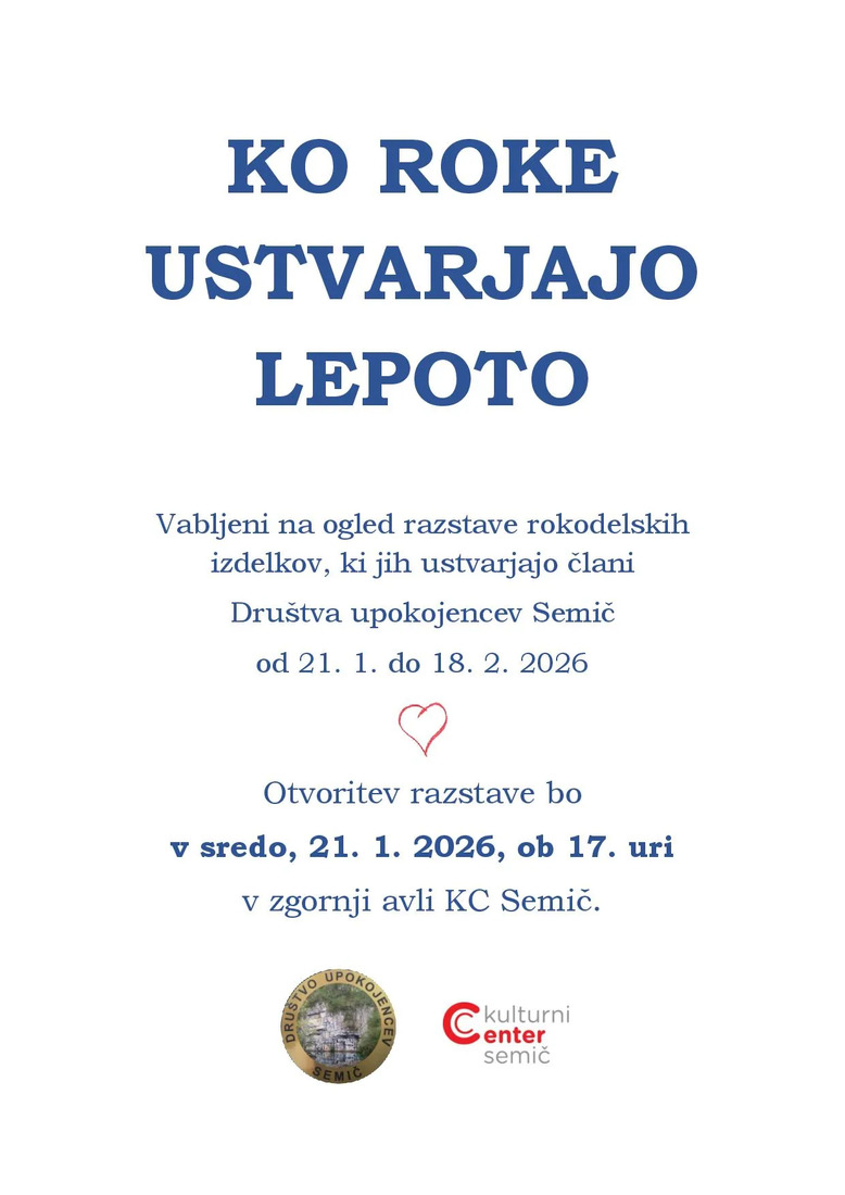 KO ROKE USTVARJAJO LEPOTO, razstava Društva upokojencev Semič
