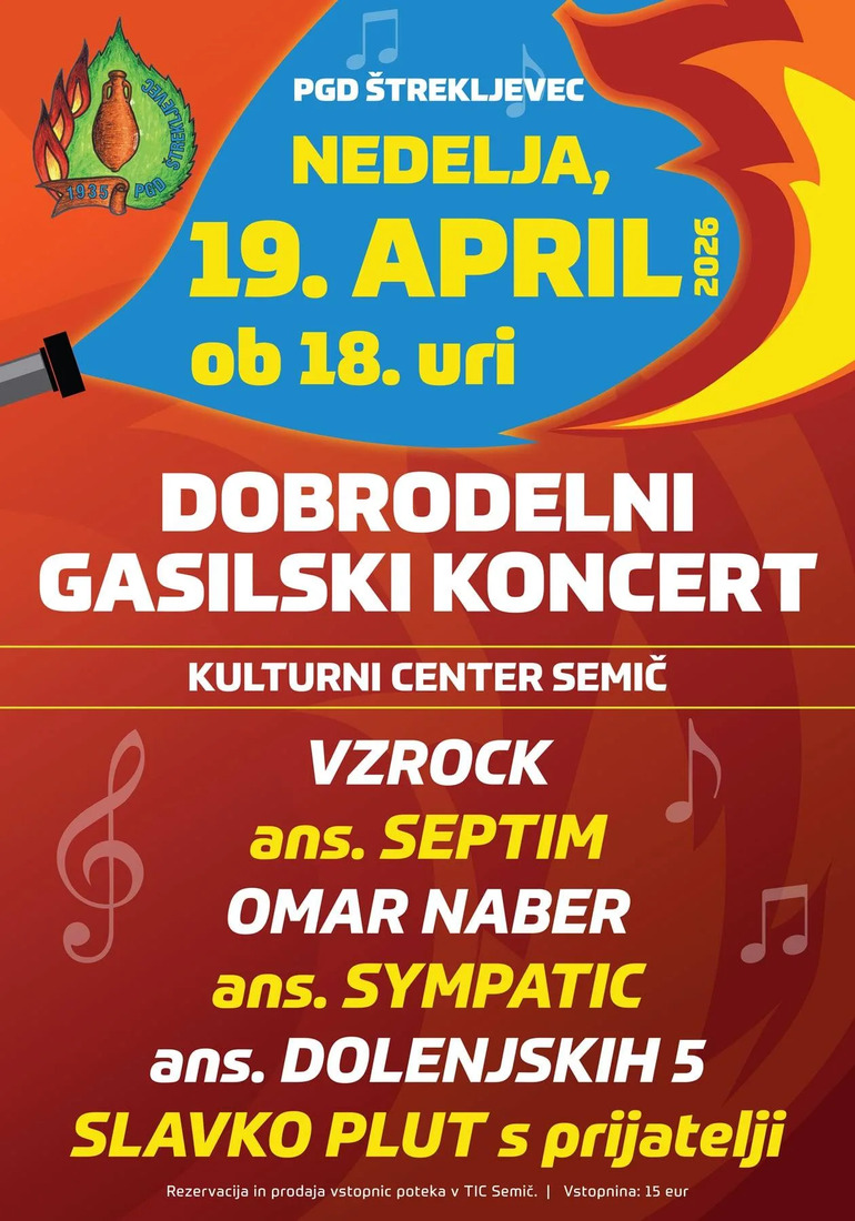 PGD Štrekljevec vabi na DOBRODELNI KONCERT v nedeljo, 19. 4. 2026, ob 18. uri v Kulturni center Semič.