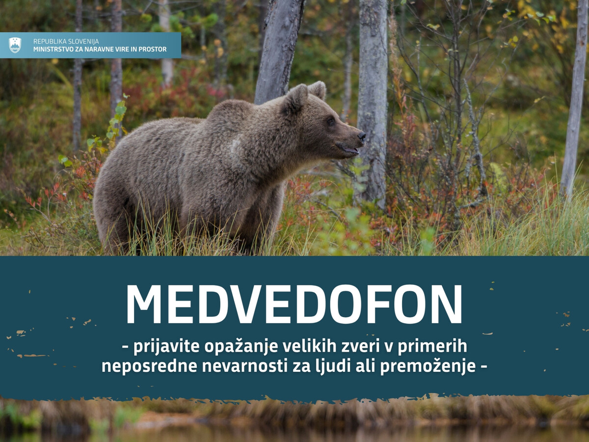 V primeru ogroženosti, pojava medveda v naselju ali poškodbe človeka takoj pokličite 112. Opažanja medveda lahko prijavite tudi preko aplikacije MedvedoFON oziroma na www.narcis.gov.si.