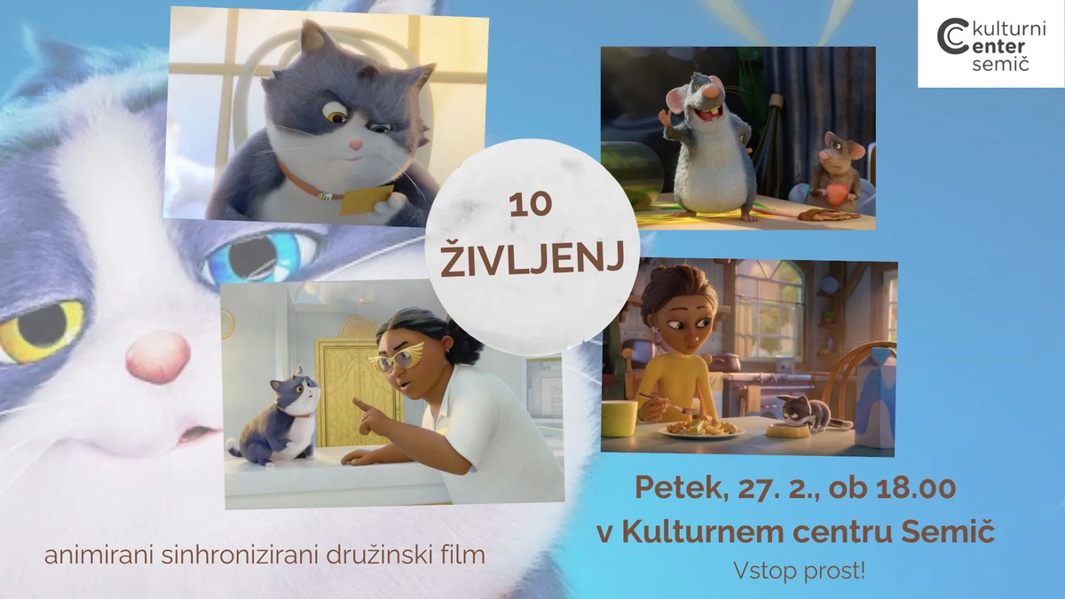 Kulturni center Semič vas v sklopu zimskih počitnic vabi na ogled animiranega sinhroniziranega družinskega filma 10 ŽIVLJENJ v petek, 27. februarja 2026, ob 18.00 v Kulturnem centru Semič.
