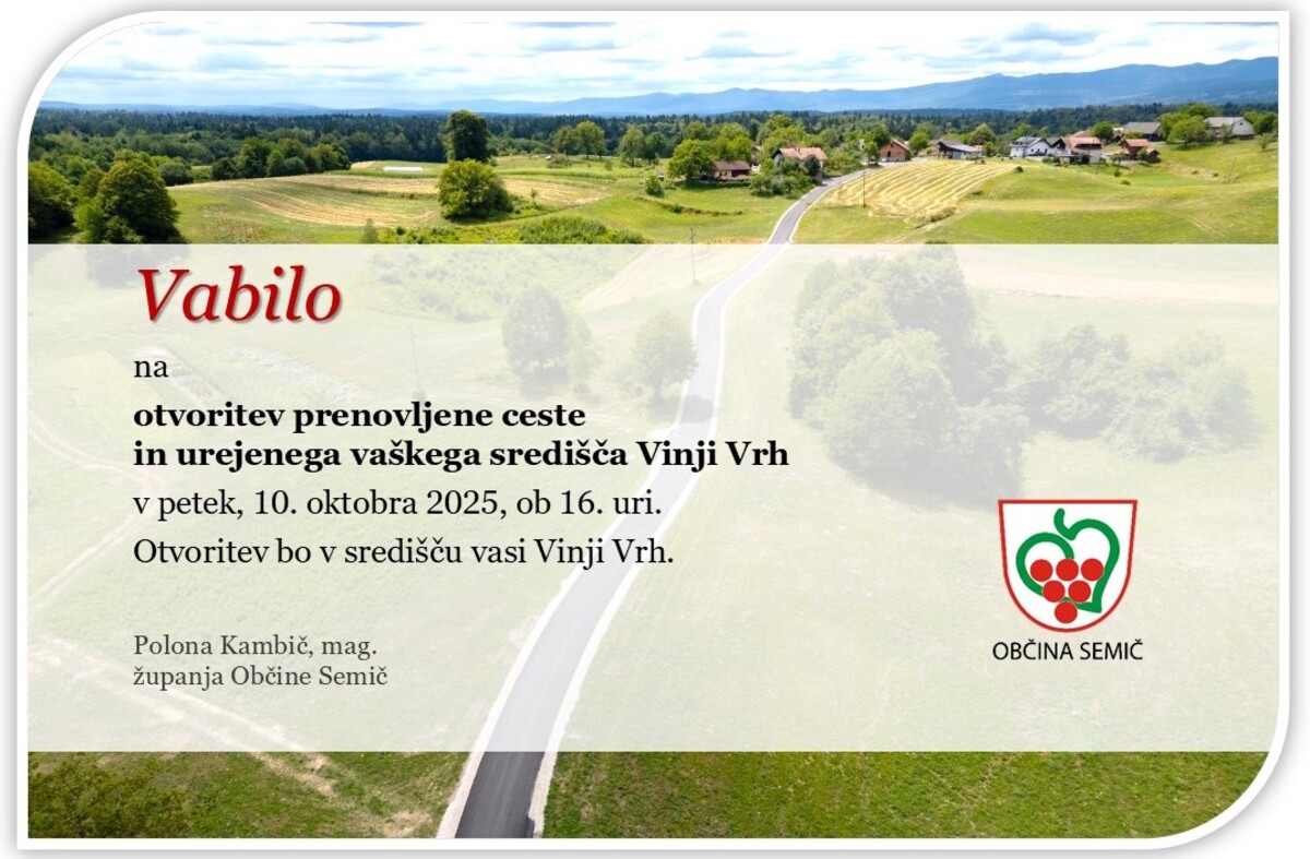 Vabilo na otvoritev prenovljene ceste in urejenega vaškega središča na Vinjem Vrhu