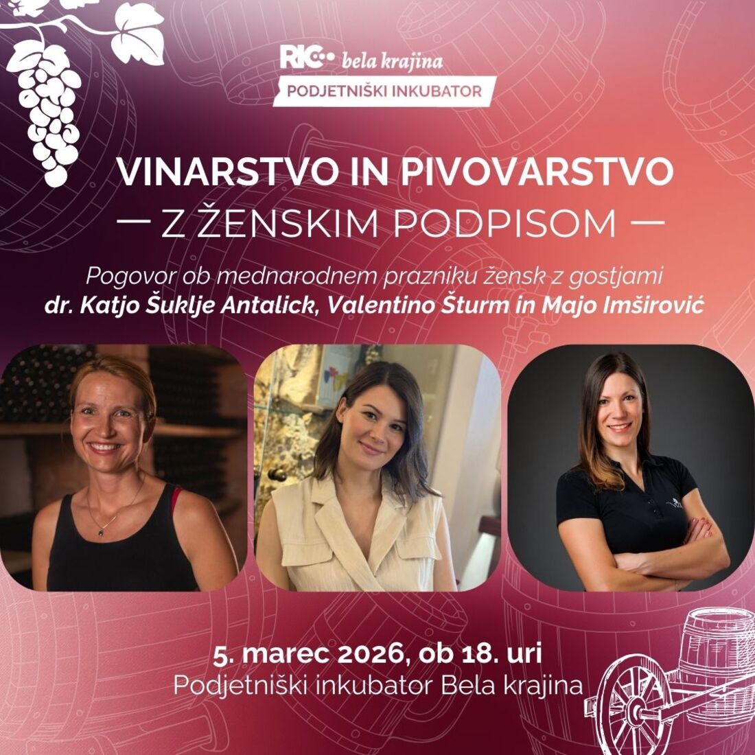 Dogodek bo potekal v četrtek, 5. marca 2026, ob 18.00 v Podjetniškem inkubatorju Bela krajina, kjer bodo svoje zgodbe, izkušnje in poglede delile izjemne gostje: