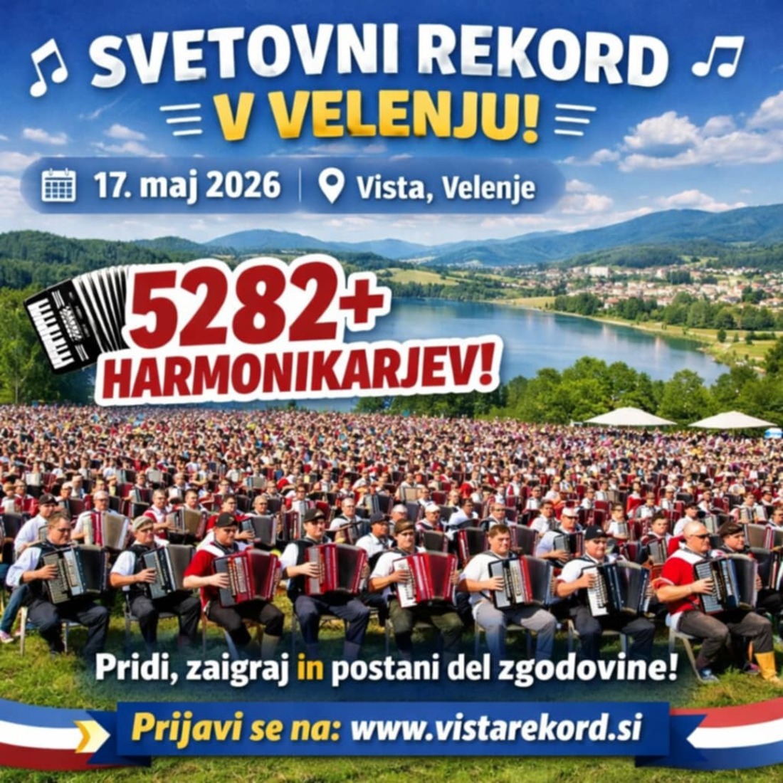 Svetovni rekord v največjem številu harmonikarjev - vabljeni v Velenje